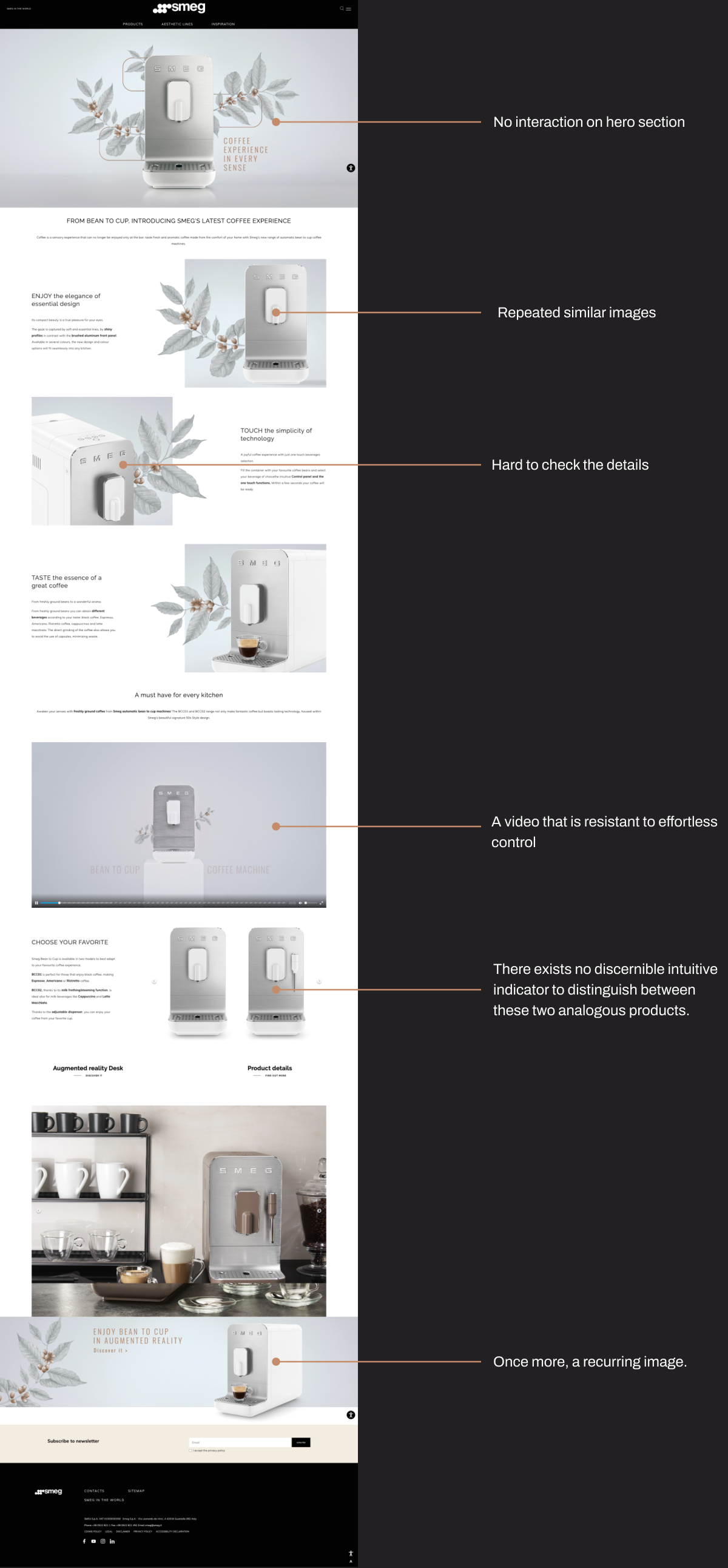 However, their recent microsite for a new coffee machine calls for improvements in both information arrangement and user engagement.
